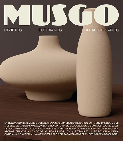 Musgo es una tienda de objetos cotidianos con carácter y alma, ubicada en el barrio Americana de Guadalajara. El desafío era construir una identidad que reflejara la sensibilidad del espacio: algo natural, cercano, hecho a mano y con intención.